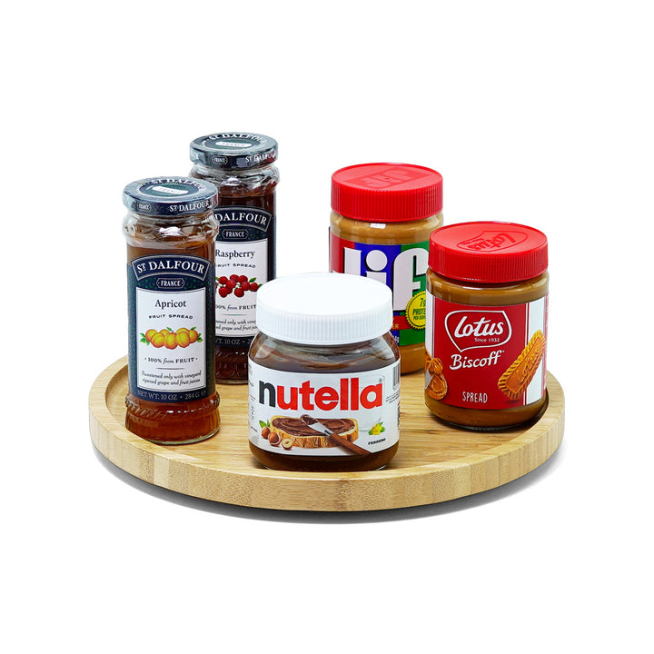 Our versatile Bamboo Turntable is a great fit for your pantry, kitchen countertop, or even your dining table. Designed for those challenging-to-reach corners in your pantry, this premium turntable includes a raised edge to prevent items from slipping off, offers a 360-degree rotation, and evenly distributes weight.