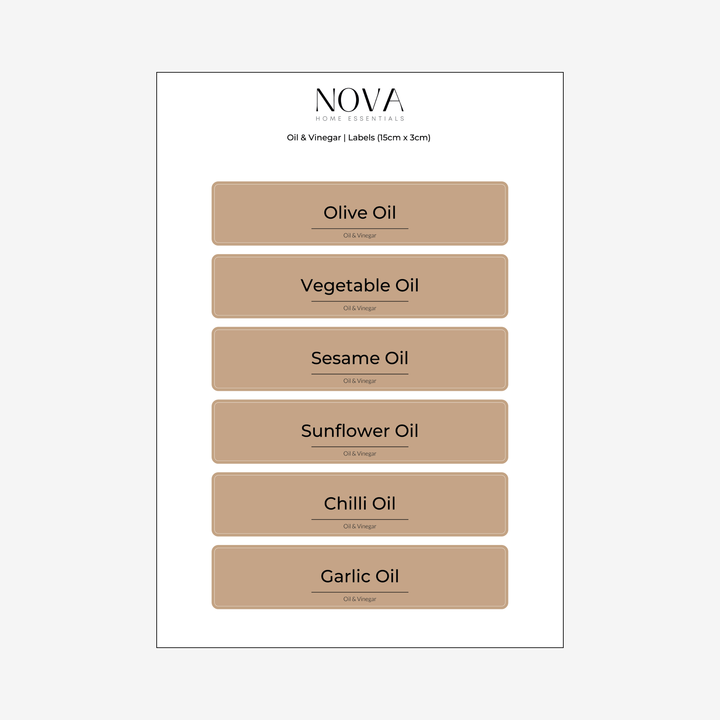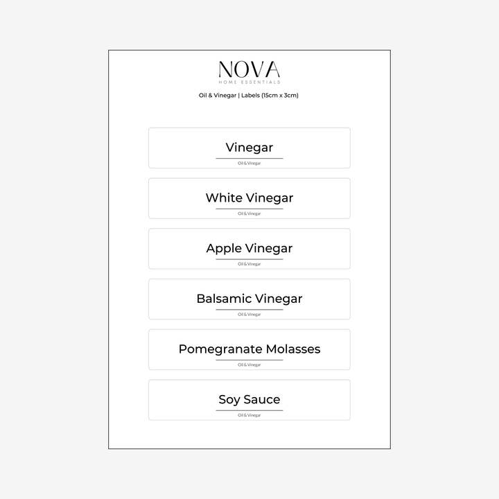 - Two A4 Sticker Sheets: Includes 12 Oil and Vinegar labels commonly used in kitchens