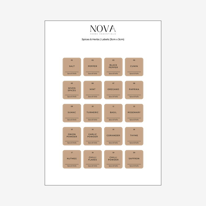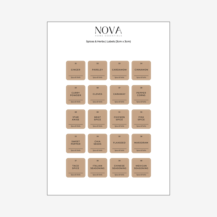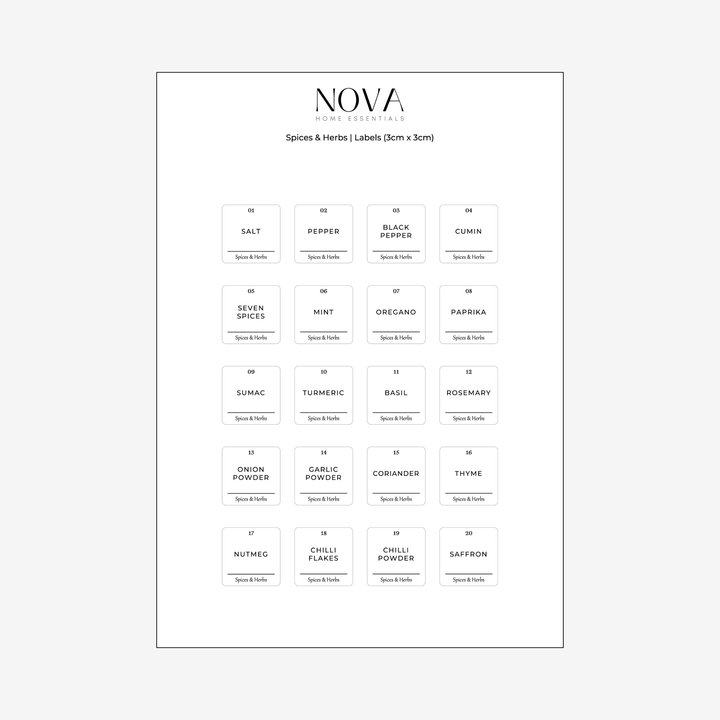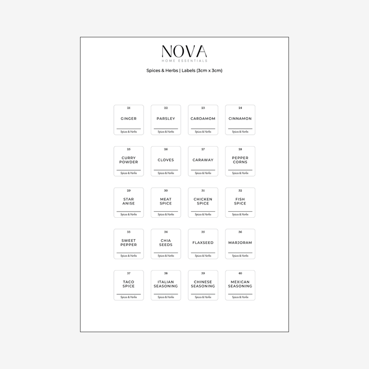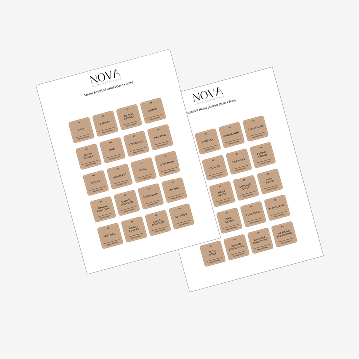- Two A4 Sticker Sheets: Includes 40 spice and herb labels commonly used in kitchens
