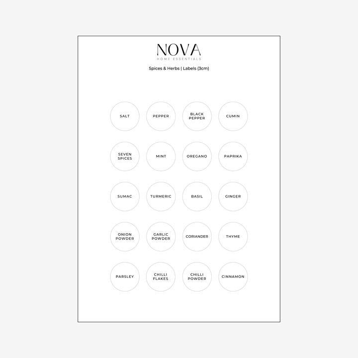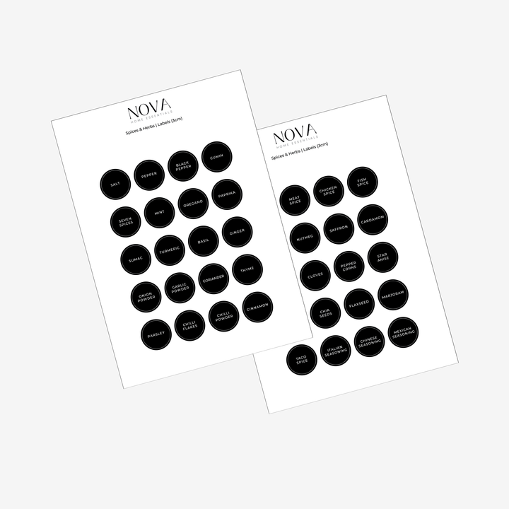 - Two A4 Sticker Sheets: Includes 40 spice and herb labels commonly used in kitchens