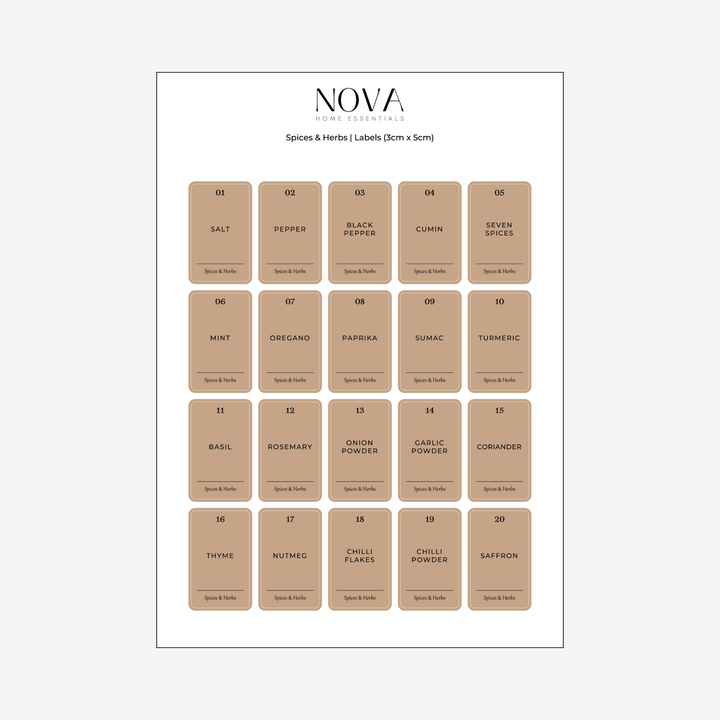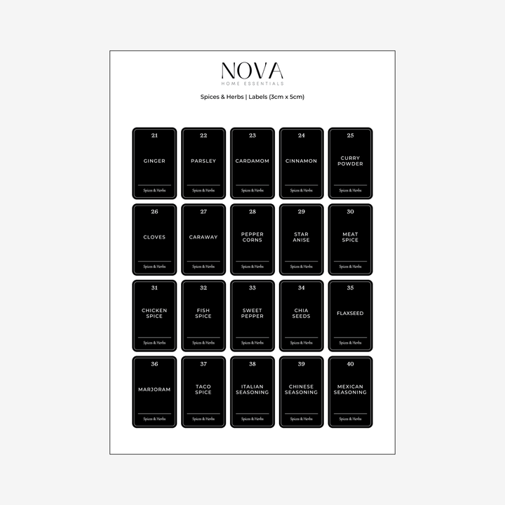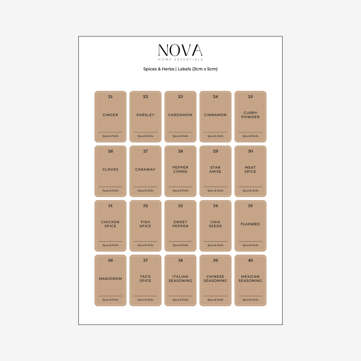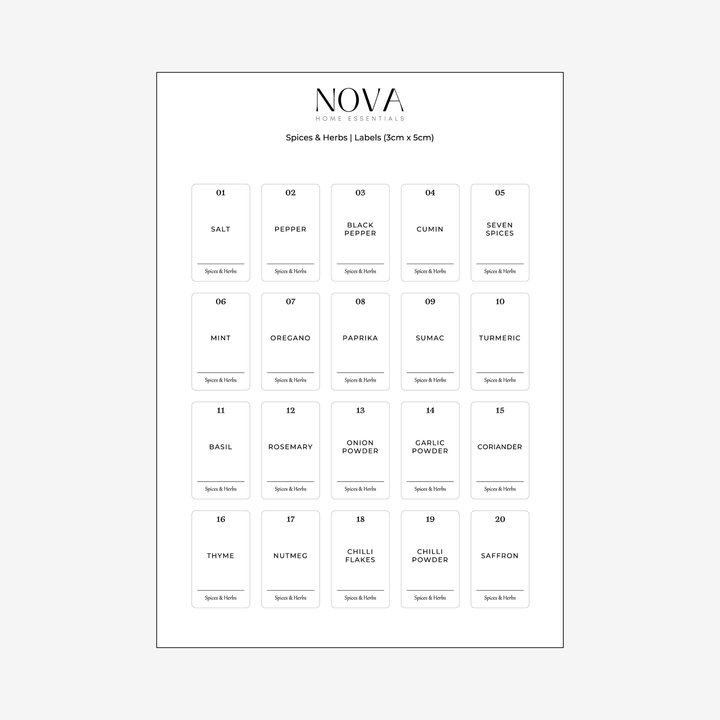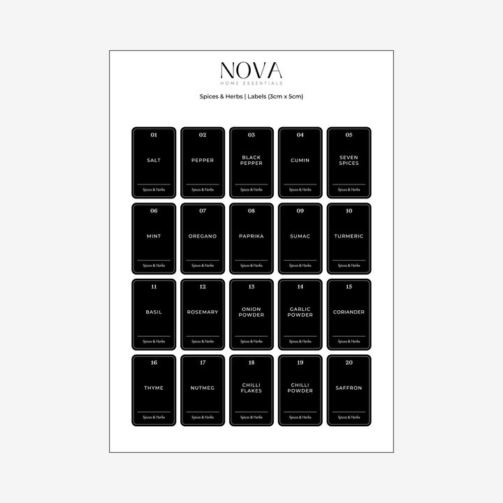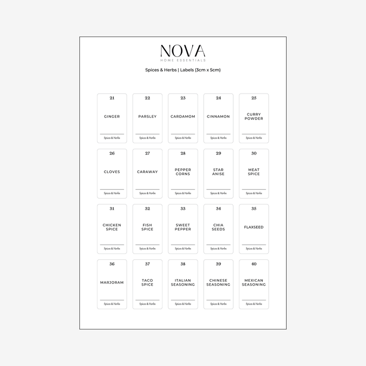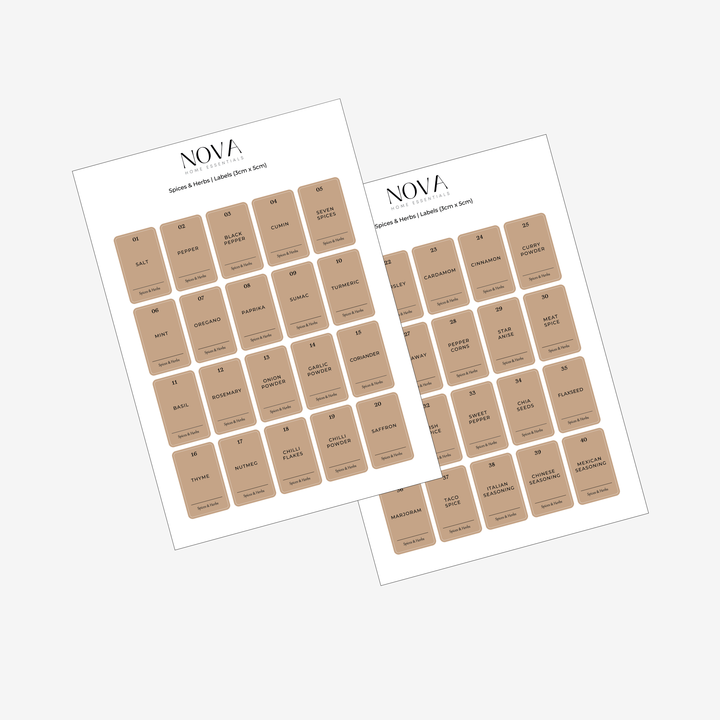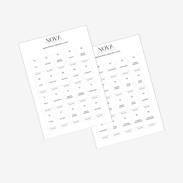 - Two A4 Sticker Sheets: Includes 40 spice and herb labels commonly used in kitchens
